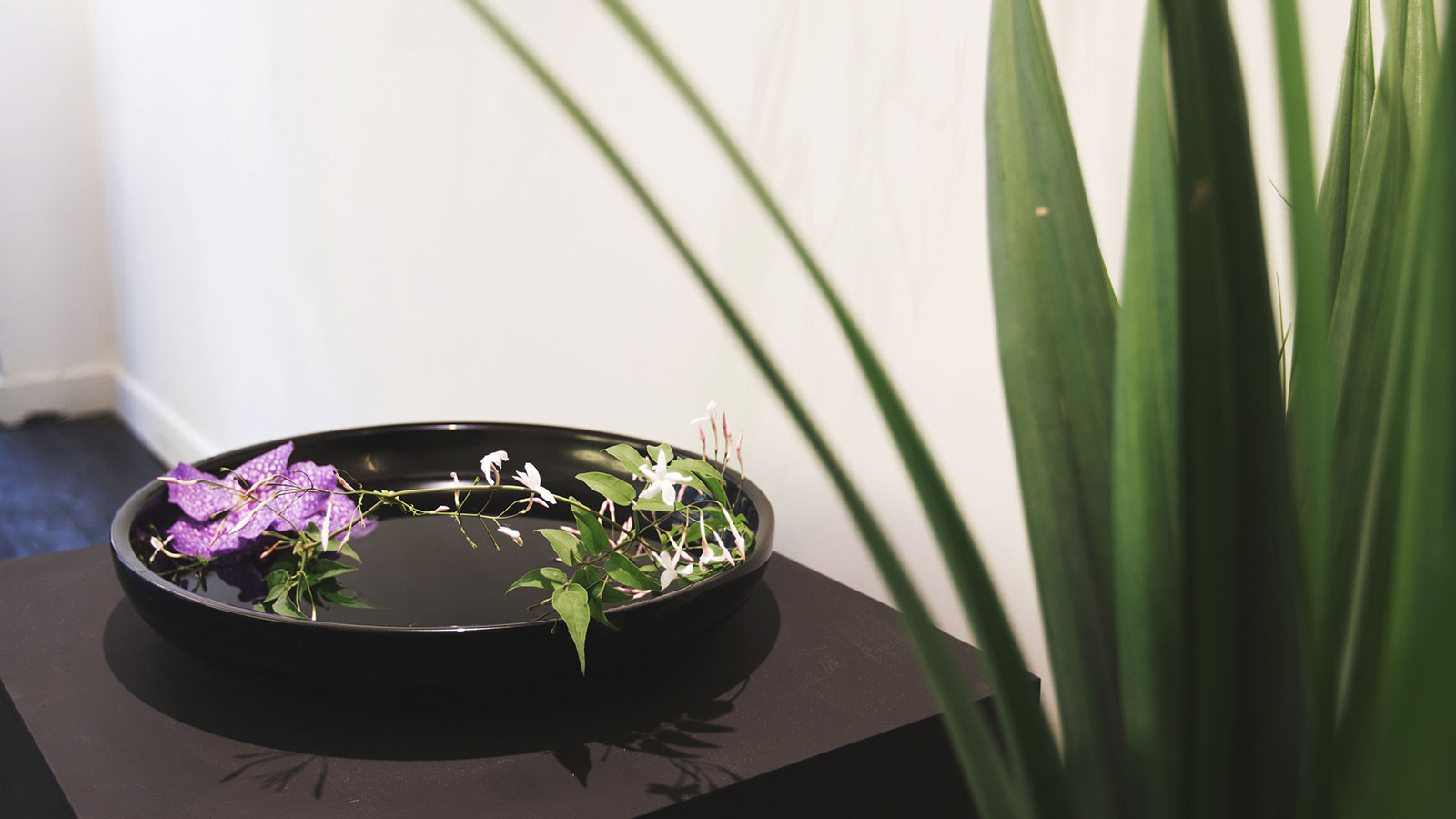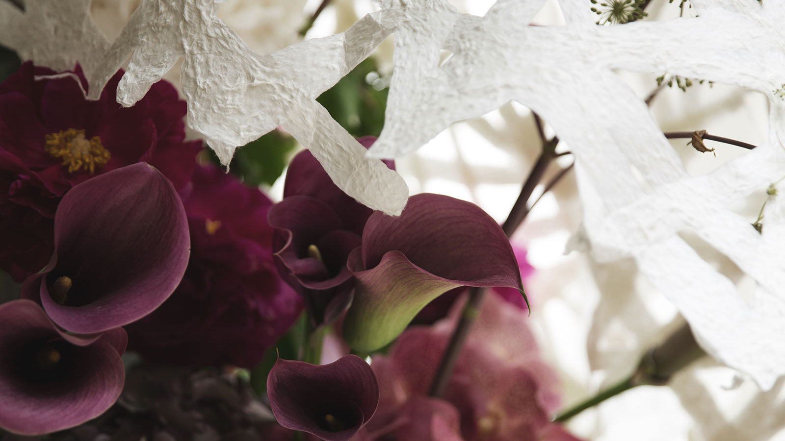 Inspirée par «Eloge de l'ombre» de Junichiro Tanizaki, Kuniko.O a réalisé ses beaux yeux avec son travail. Elle a abordé à partir des quatre mots-clés profondément liés au sens esthétique japonais, Hana, Washi, Sumi, Ryuboku et spatialement affiché en utilisant du papier japonais (Echizen Washi), de la mousse, du bois flotté, etc., ainsi que des fleurs.